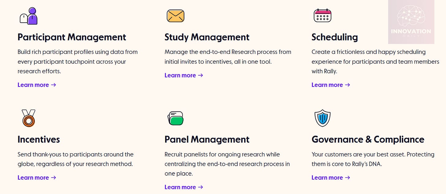 That’s where Rally shines. It’s built not for cold outreach, but for deep, structured research with your actual users — people already inside your product ecosystem.