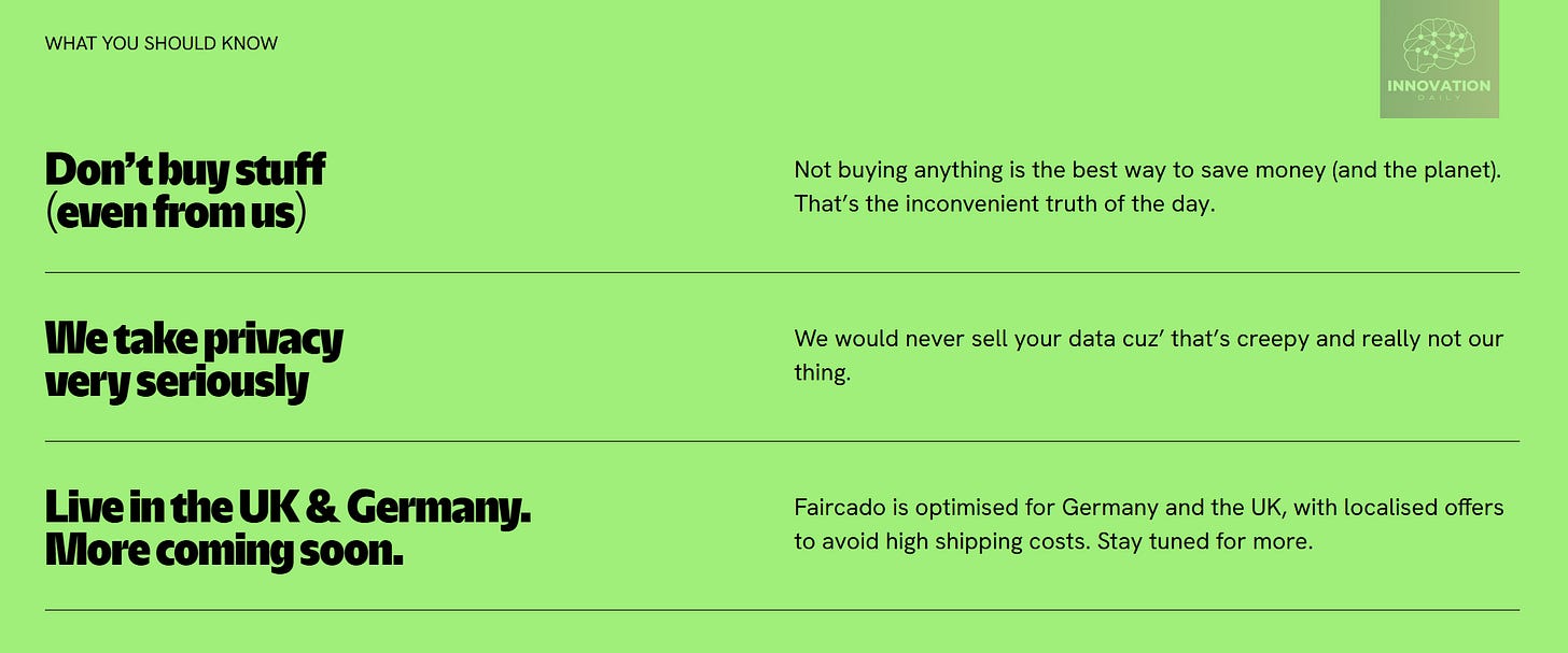 Instead of asking users to browse a separate site or download yet another app, Faircado integrates directly into the way people already shop. All you need to do is install their browser extension. Then just shop as usual on sites like Amazon.