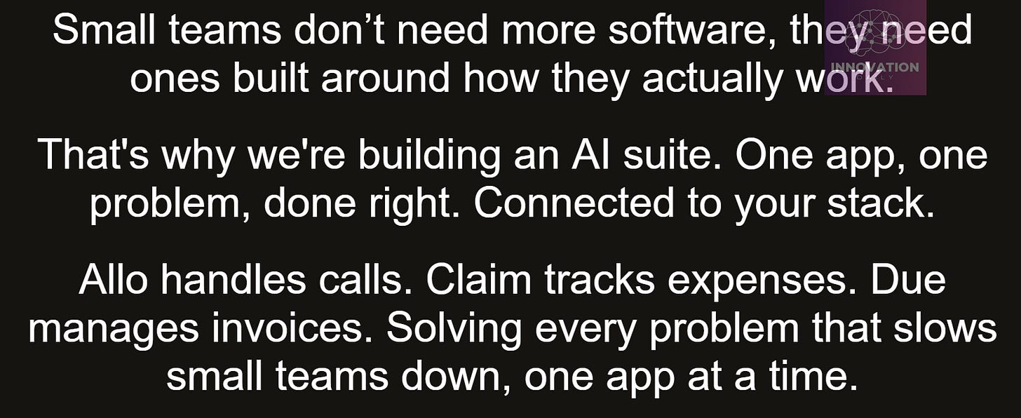 The message is clear: the next big wave in software won’t come from making AI smarter — it’ll come from making small business life simpler.