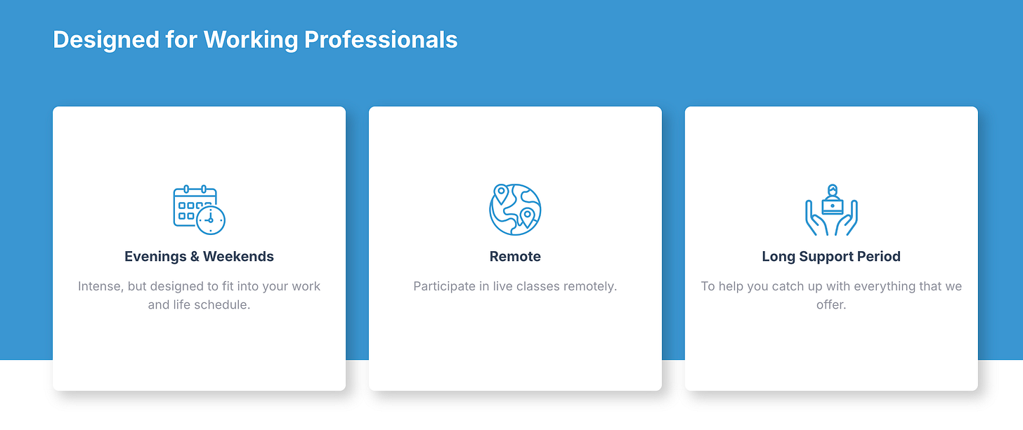 So the real promise isn’t “we’ll teach you X” — it’s “we’ll help you land a job that pays more for what you already know.”