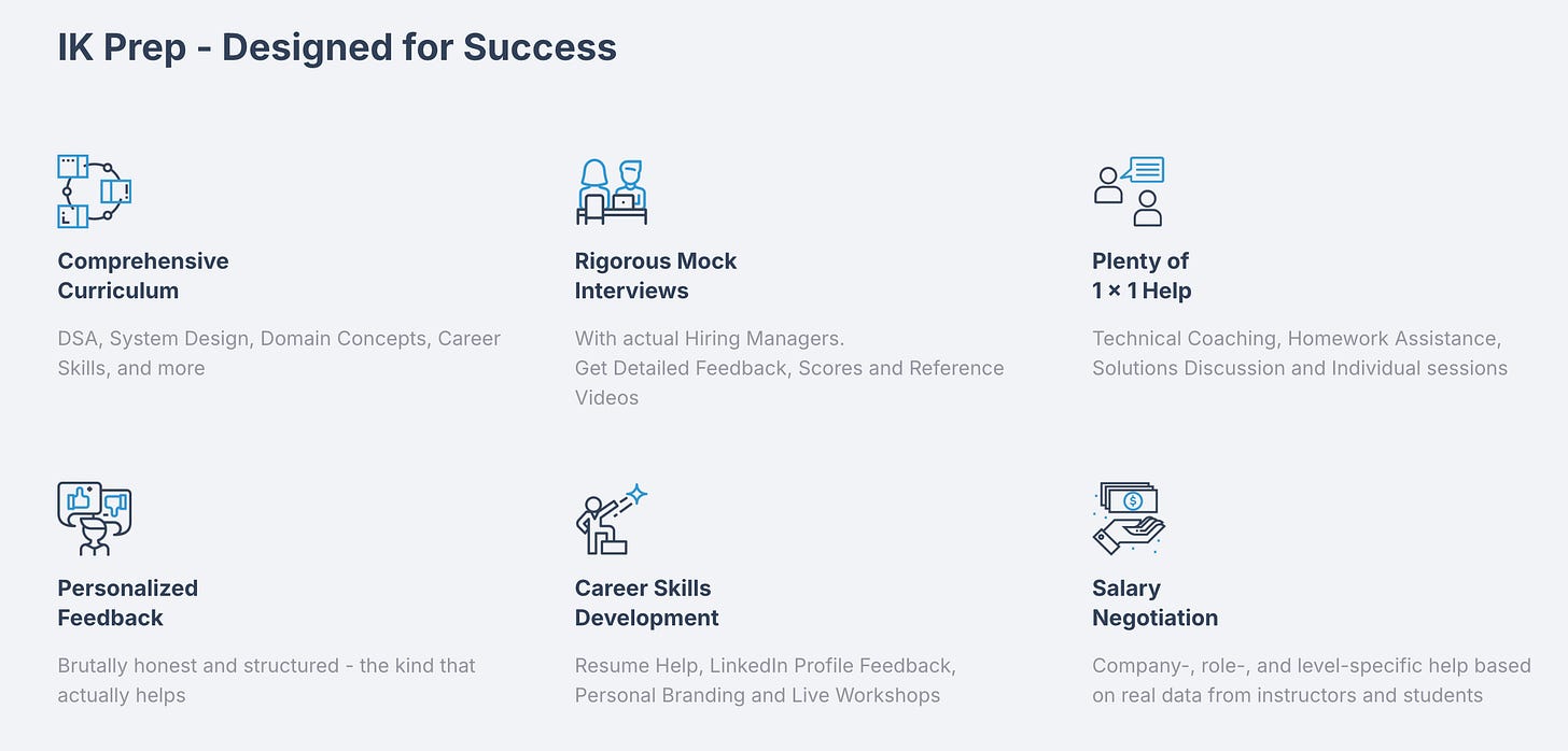 And the only way to get that kind of outcome is to ace those tough interviews. Hence, the heavy emphasis on mock interviews — not just as practice, but as a diagnostic tool.