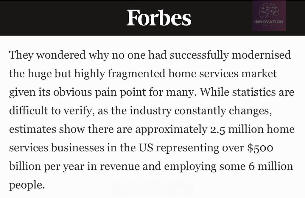 Other players are modernizing adjacent segments of the broader $500 billion U.S. home improvement market, which includes around 2.5 million companies employing 6 million people — just 2–3 workers per business on average.