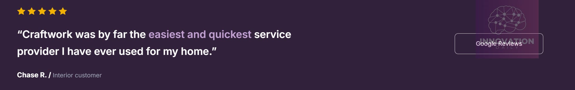 If the quote looks good, they upload photos, describe their needs, and share comments. Craftwork’s specialists review the project, fine-tune the pricing and schedule, and confirm visit times that fit the homeowner’s calendar — all within minutes.
