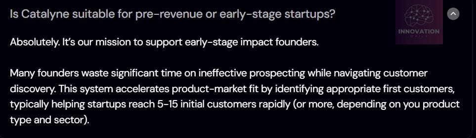 According to the company, this approach has already been tested on hundreds of startups from leading European accelerators — not surprising, given Catalyne’s German roots.