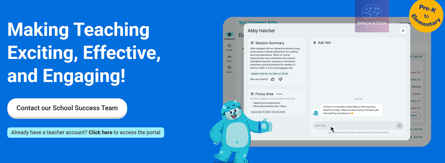What makes Yeti stand out is how it turns learning into play — using simple games tailored to each child by an AI-powered engine. This smart system dynamically adjusts the content to match the learner’s level and needs, building a personalized educational journey.