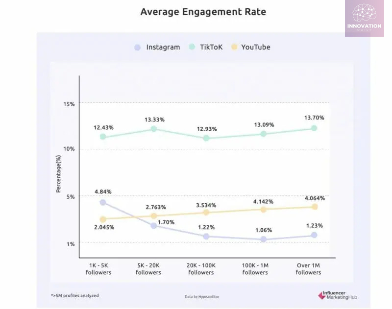 Other studies show a 4.84% engagement rate for creators under 5K followers vs. 1.23% for celebrities — still a massive gap.