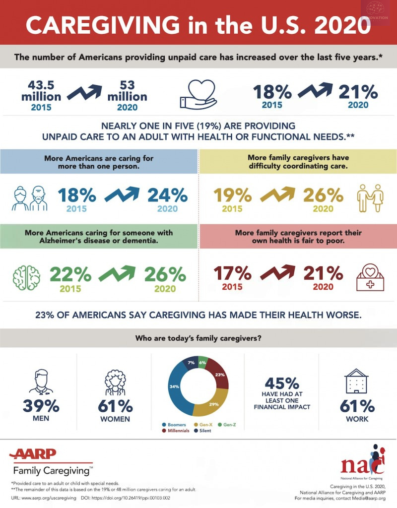 Cariloop isn’t exploiting fear — the crisis is very real. The number of Americans caring for loved ones is staggering and rapidly growing. In 2015, it was 43.5 million people. By 2020, that number had surged to 53 million — roughly 19% of the population. Over 60% of them are employed, and 21% say their own health is suffering as a result.