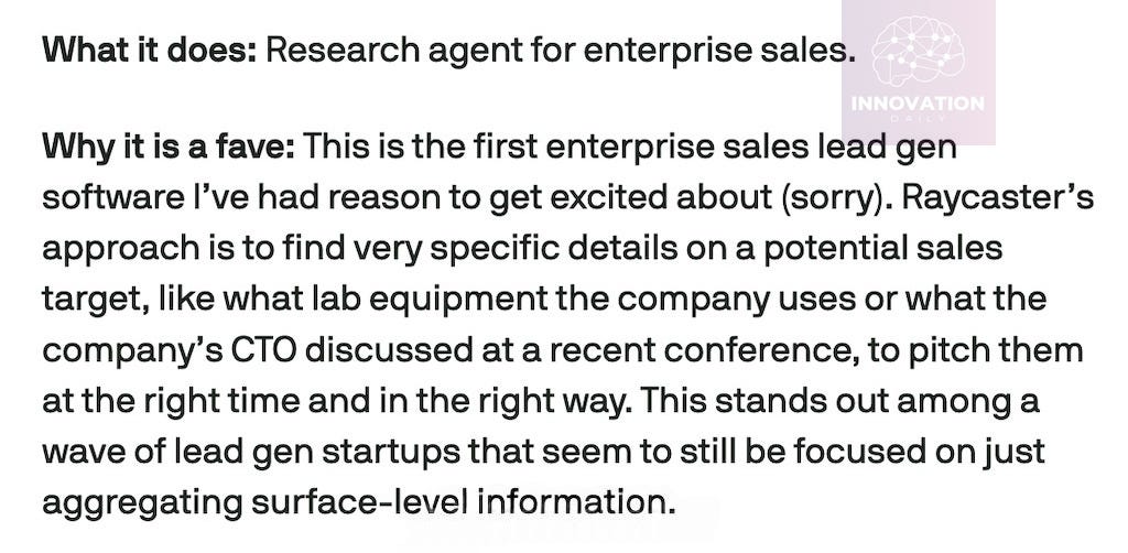 Why the delay? Because Raycaster applied to YC with a completely different product — an AI sales agent. That agent analyzed prospective clients (including details like what lab equipment they used and what their CTO mentioned at a recent conference) to help sales teams understand what to pitch and when.