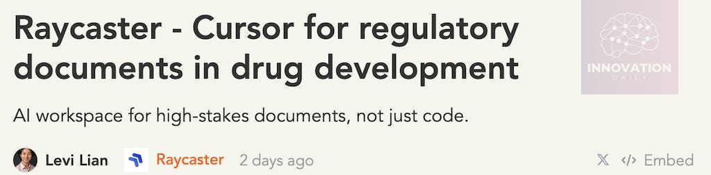 Raycaster’s announcement on the YC site immediately grabbed attention with its bold title: “Raycaster — Cursor for Regulatory Documents.”