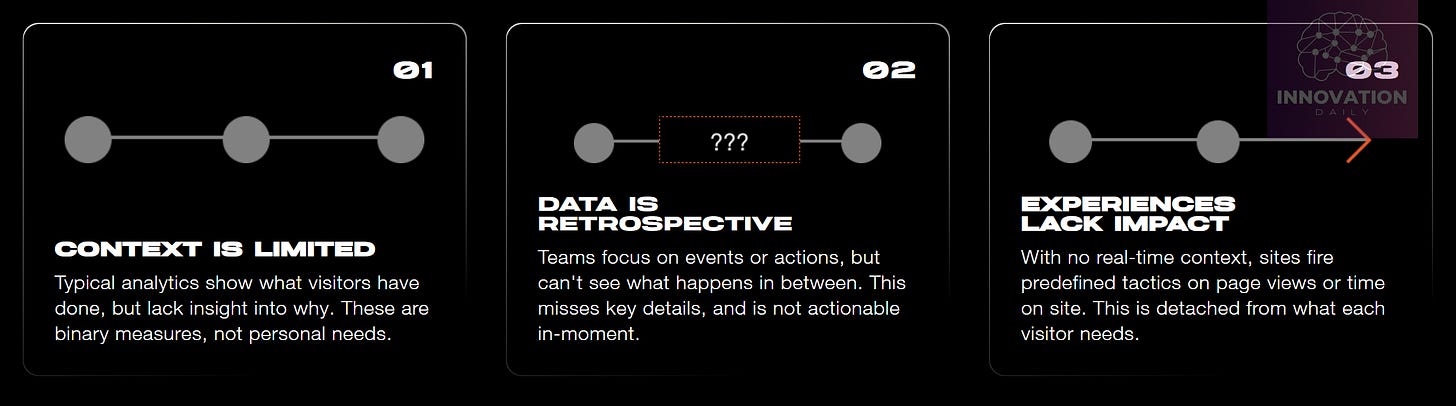This dynamic, intent-driven segmentation model is gaining traction across industries. Session AI (formerly ZineOne) predicts what anonymous users are likely to buy in real time. Neocom identifies when shoppers get overwhelmed while searching for products and steps in with smart assistants. ForMotiv monitors how people fill out insurance forms — down to cursor movement — to detect intent or risk. And Subsets, a Y Combinator alum, analyzes how readers interact with digital content, clustering them into engagement-based segments to boost subscriptions and retention.