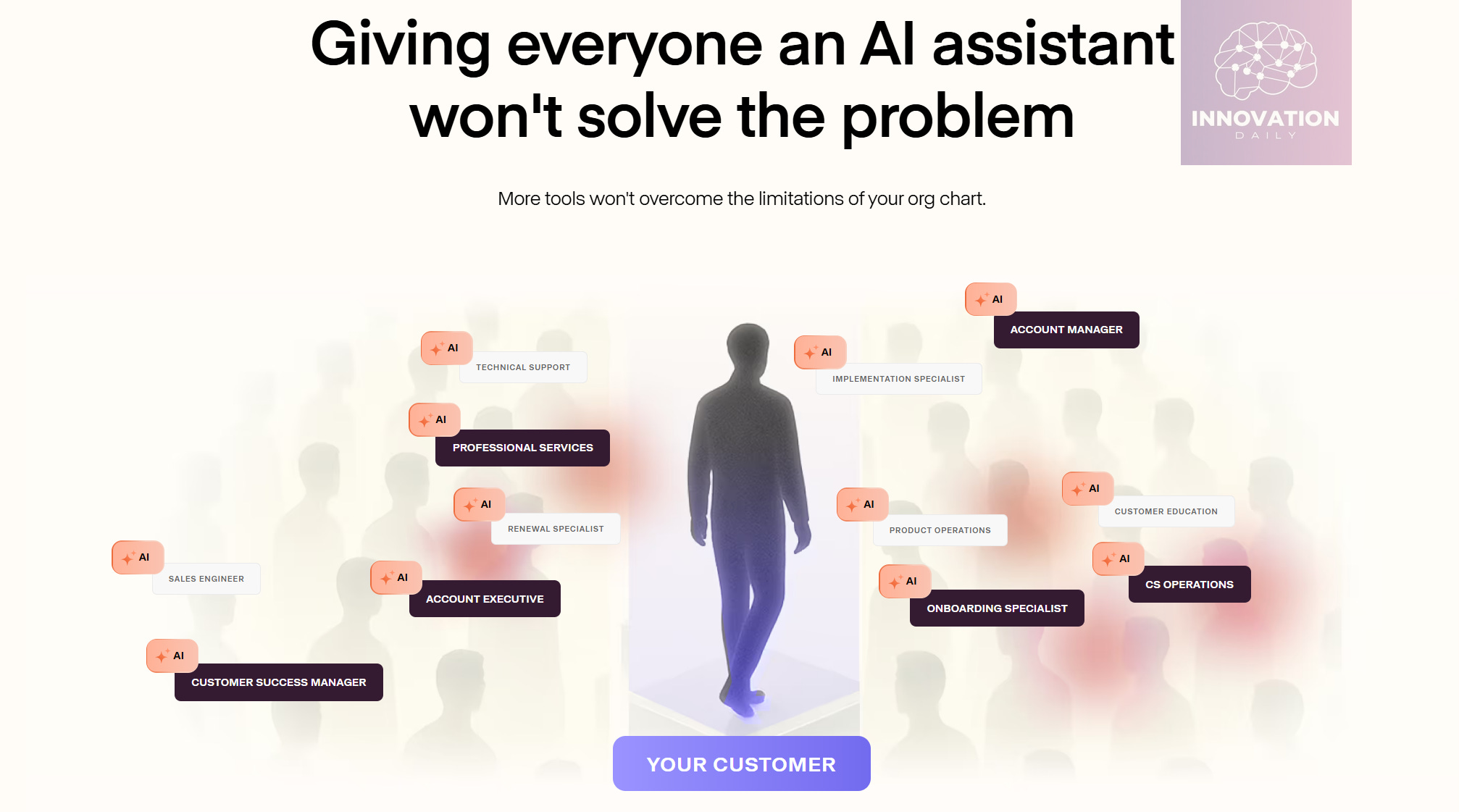 Agency argues that giving each support employee an AI assistant won’t solve the problem. It only slows down the inevitable. The root issue is the direct proportional dependence between customer count and headcount.